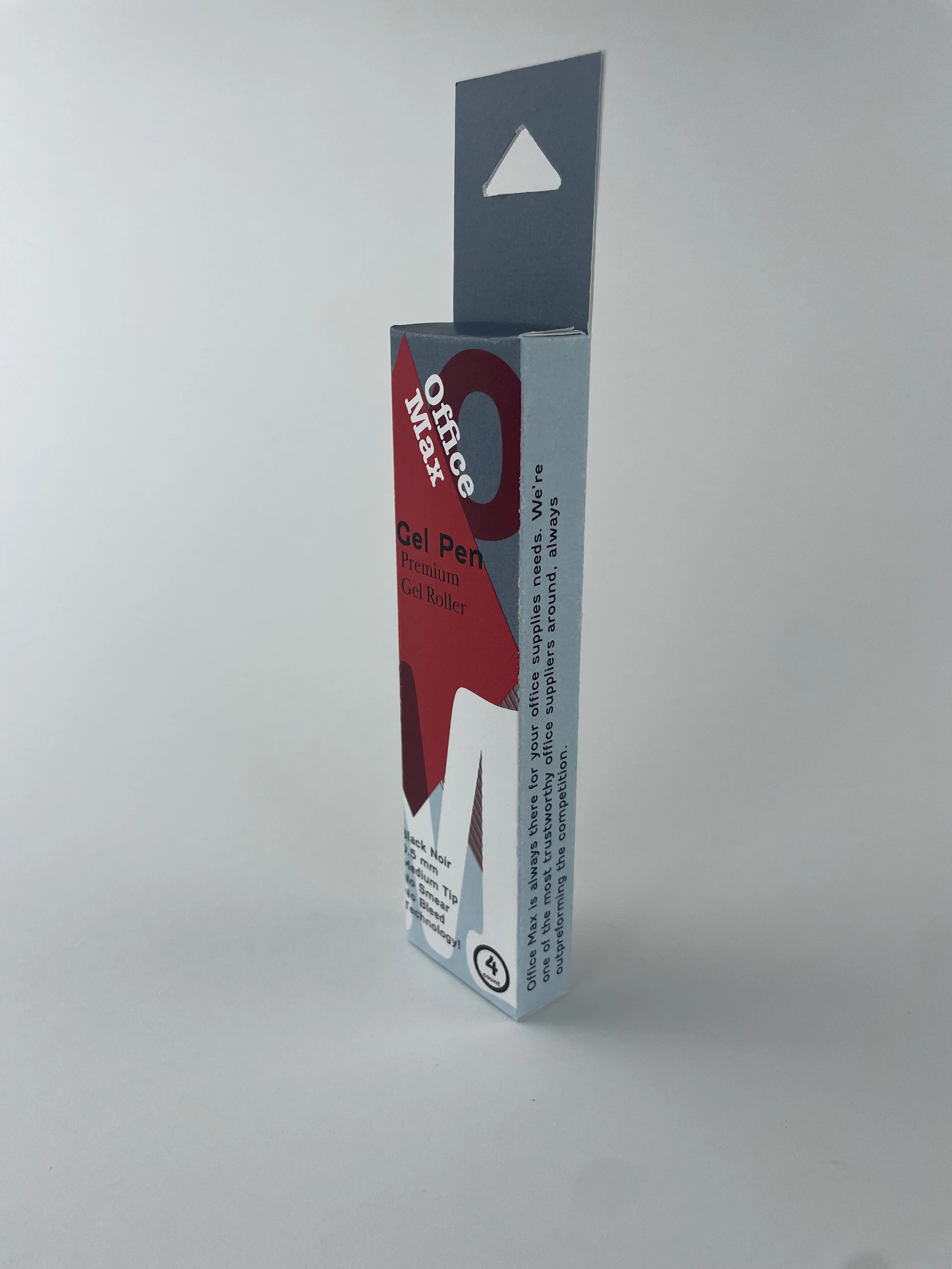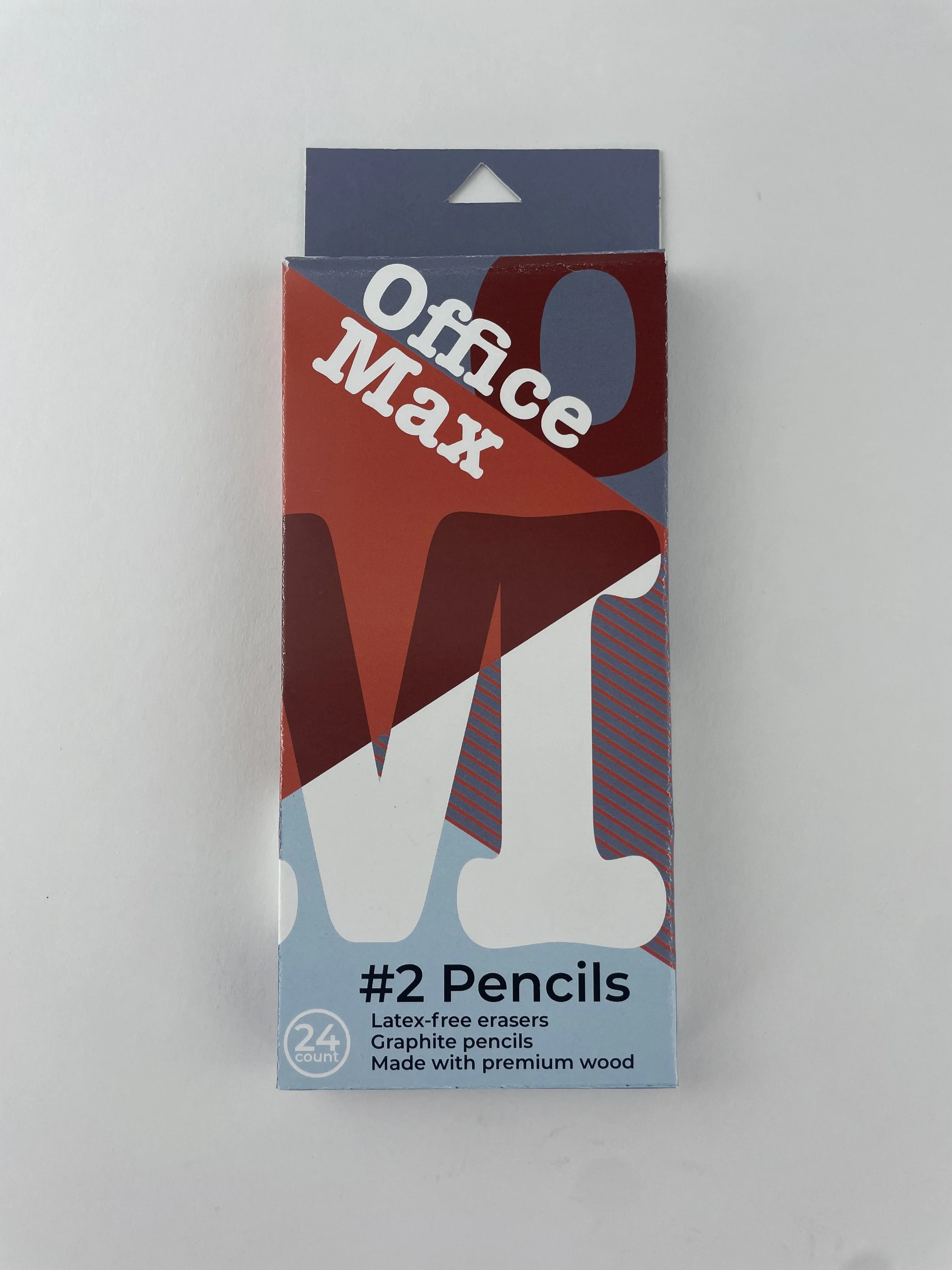 For this project I recreated Office Max packaging for their store products. I used the first letters of both office and max and used that to be integrated in the design. I reused the Office Max red and then use different shades and a complimentary blue with a dark grey background to create an eye pleasing color scheme for the packaging. Using basic shapes like diamonds and repeating lines add a minimal aesthetic that draws more attention to the large “O” and “M”, especially where the “M” transitions to a dark red when overlapping the diamond on the box.